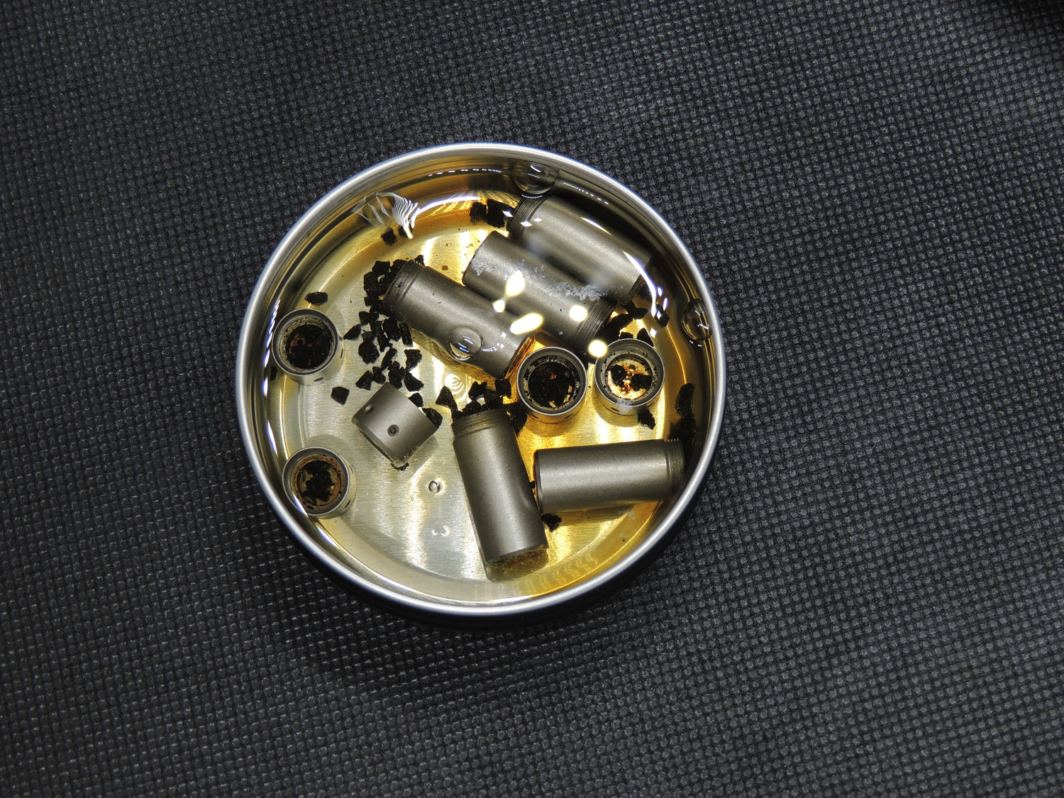 Once you have enjoyed smoking, blow out the Rolling Tip from the mouth piece. This prevents excess wax from clogging the small holes. Then, loosen the mouth-piece and rip the remaining paper off. You can use this paper to wipe any wax on the the outside of the Rolling Tip. When ready to replaces the Filter Media, remove the mouth piece entirely and blow out the Activated Carbon from the front of the housing. If the wax is cold or too excessive, you may need soak the Reusable Rolling Tip in isopropyl alcohol (IPA).